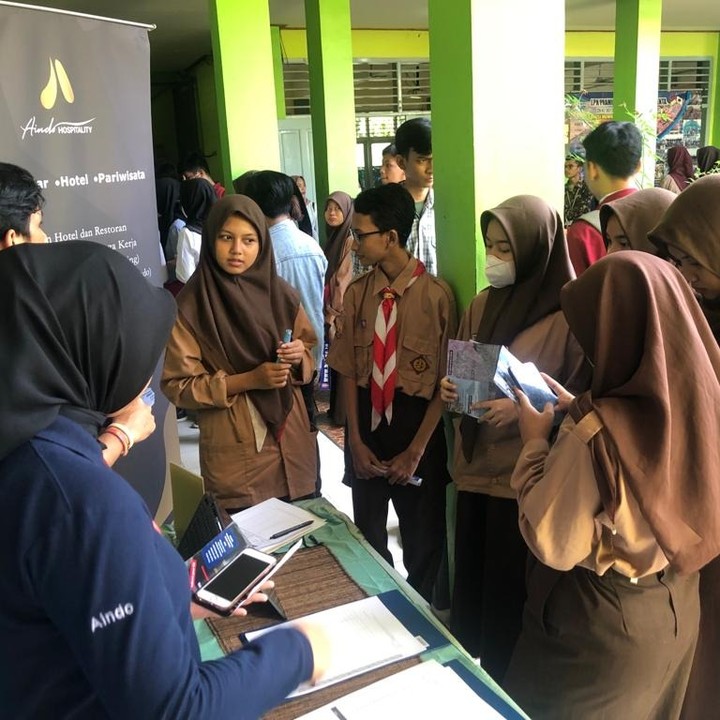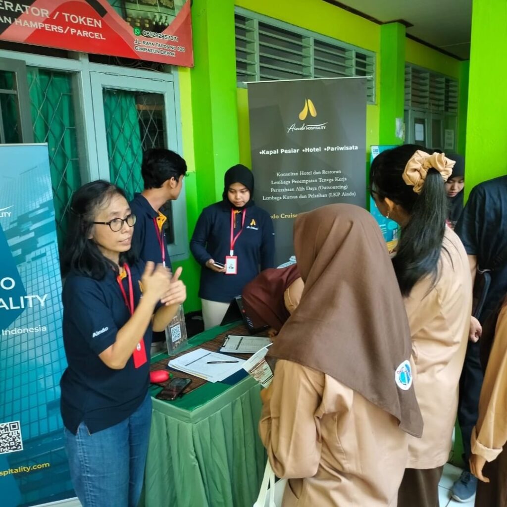 10 Mei 2023 Aindo Hospitality hadir di Depok dalam rangka memenuhi undangan Job Fair & Edu Fair SMKN I Depok.